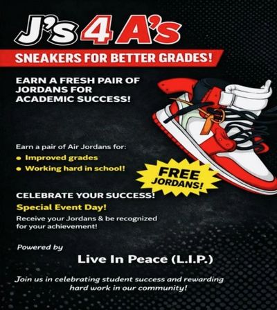 The program operates on a quarterly (card marking) incentive cycle. Youth can earn sneakers through a points for grades-based system.